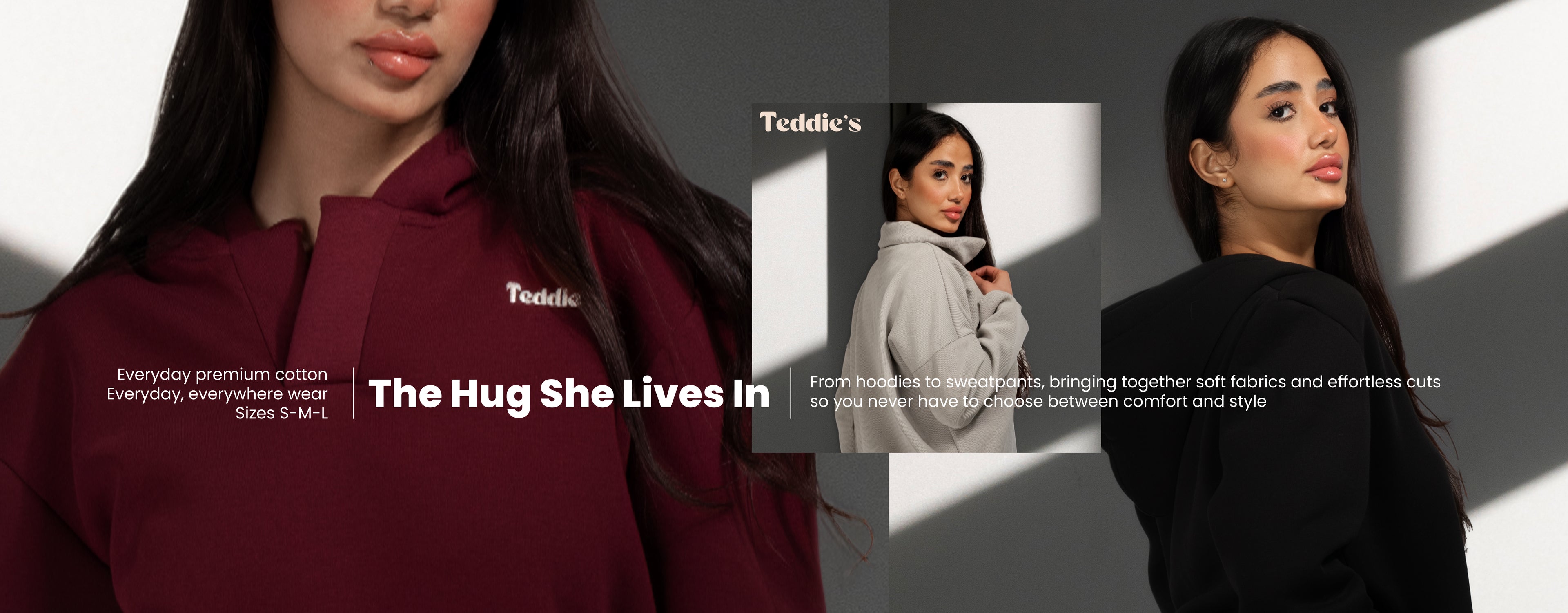 Proudly made in Egypt, every Teddie’s piece is crafted with warmth, softness, and attention to detail. From the fabric we choose to the hands that make each design, we celebrate local craftsmanship and the quiet luxury of feeling at home in your own skin.
