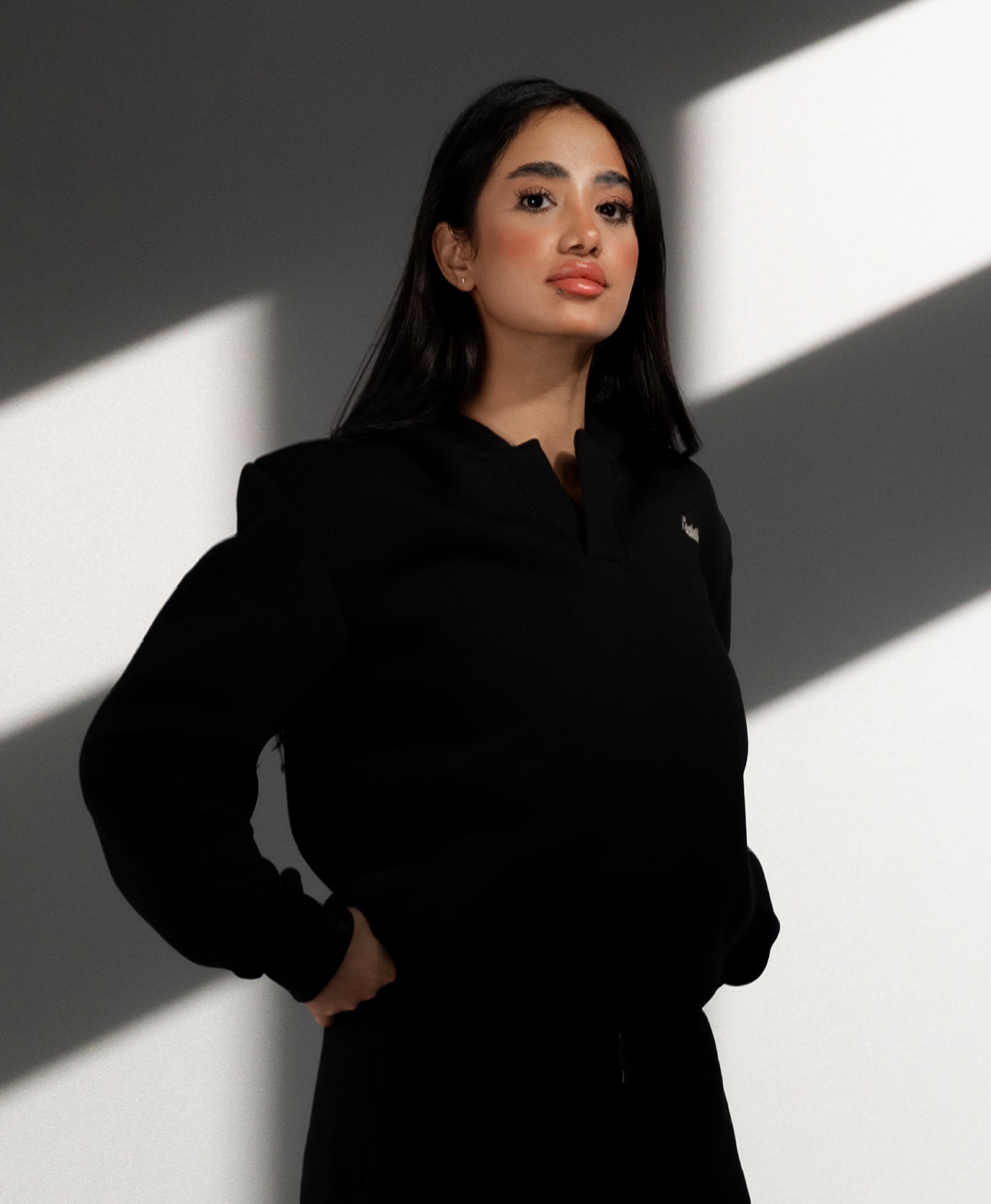 Designed with a modern V-notch neckline, subtle embroidered logo, and a relaxed fit, it’s your go-to for cozy mornings or casual outings.